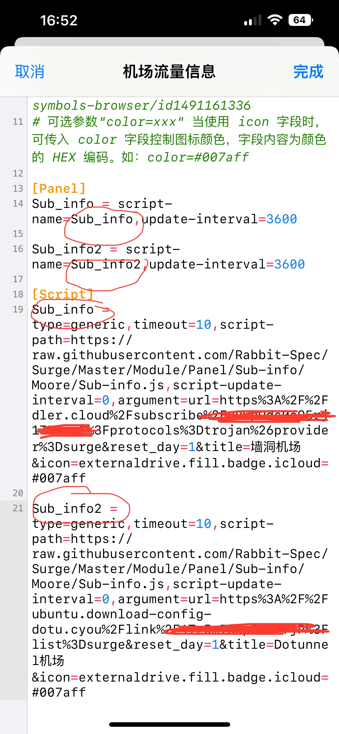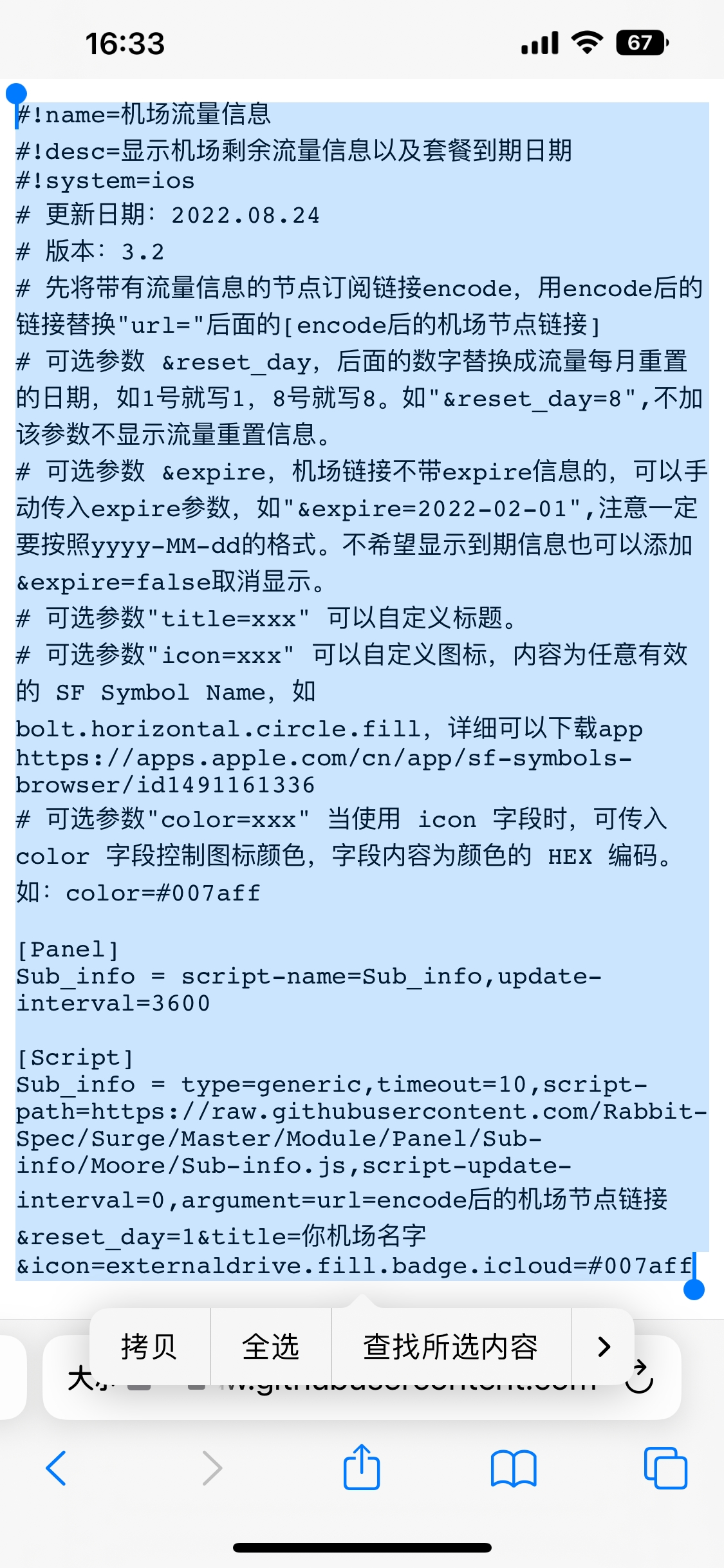 复制encode后的机场订阅地址,打开刚才保存的模块将提示内容进行更改,勾选使用后即可去首页看到效果了。
