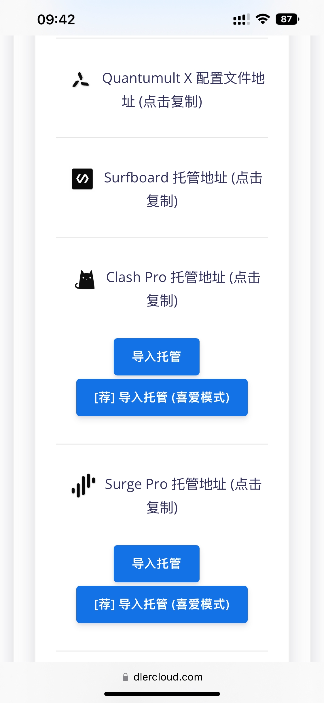上面我举例的是以墙洞为例的,作为一线机场,提供了各种App的订阅链接,有些人买的可能没有提供surge的订阅链接,但是也不是没有办法,可以用订阅转换。