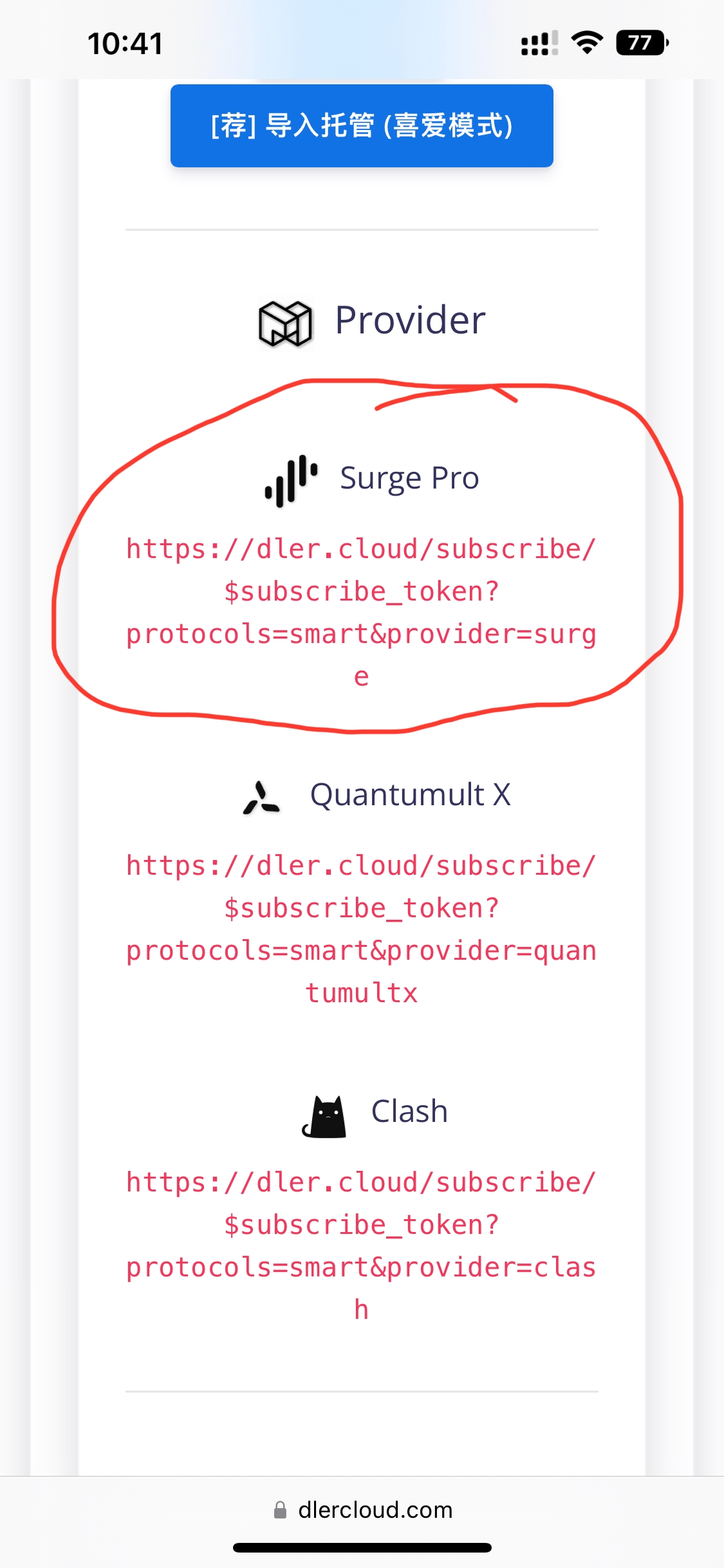 最新版的surge已经支持把托管的连接当作订阅来使用。所以你也可以不用再去寻找订阅连接。