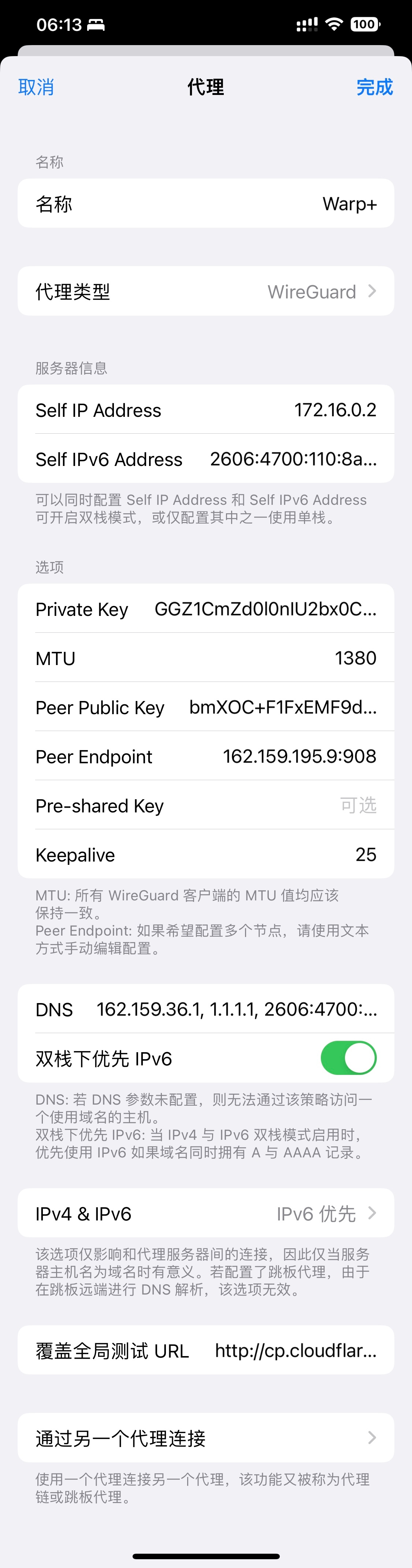 另外注意,拉warp的代理链最好是trojan协议的,部份机场的SS好像也可以,Vmess不行,其它的可以自行试验。